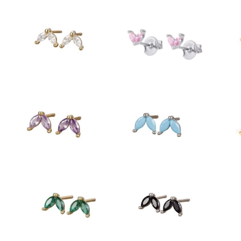 Clear Crystal Double Leaf in Silver SE81X, Black Double Leaf in Gold SE81X7, Black Double Leaf in Silver SE81X6, Clear Crystal Double Leaf in Gold SE81X1, Emerald Double Leaf in Gold SE81X9, Emerald Double Leaf in Silver SE81X8, Light Pink in Gold, Light Pink in Silver, Lilac Double Leaf in Gold SE81X3, Lilac Double Leaf in Silver SE81X2, Turquoise Double Leaf in Gold SE81X5, Turquoise Double Leaf in Silver SE81X4